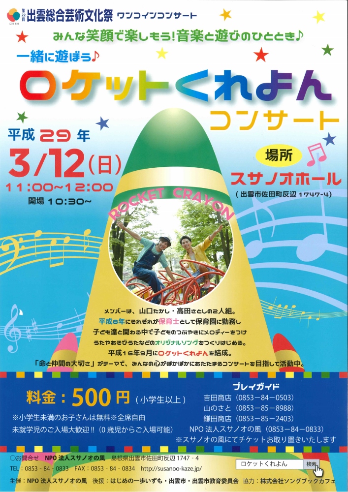 | タイトル | 一緒に遊ぼう♪ロケットくれよんコンサート |