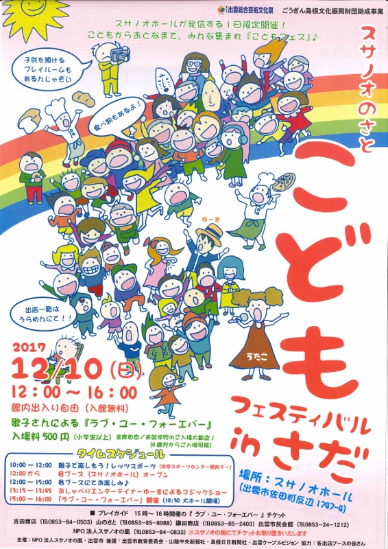 | タイトル | スサノオの里 こどもフェスティバルinさだ~スサノオホール~ |